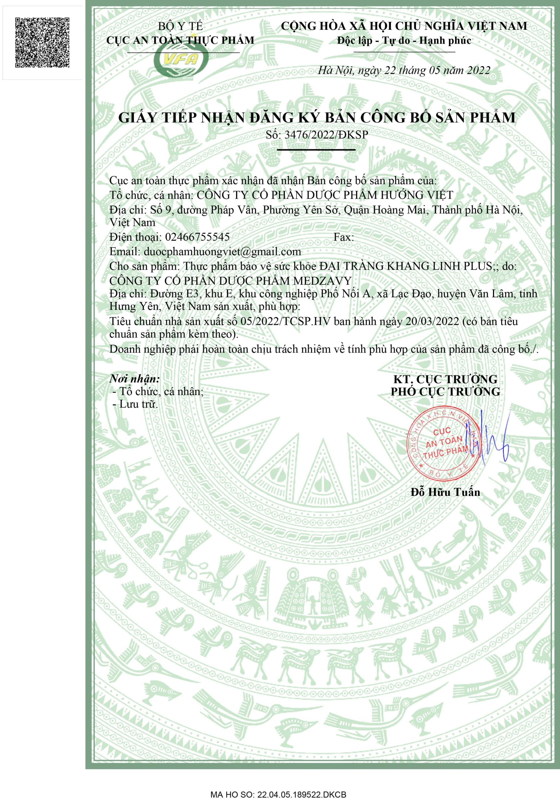 THÀNH PHẦN: Trong 1viên nang ĐẠI TRÀNG KHANG LINH PLUS có chứa: